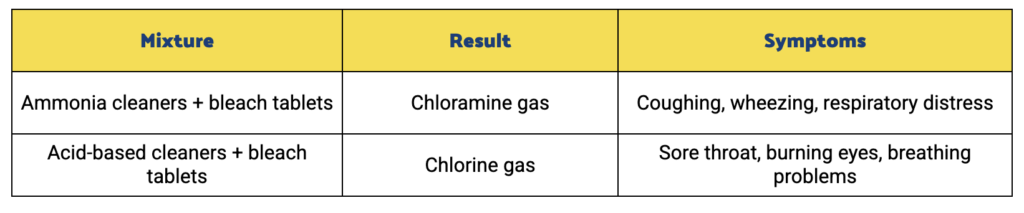 If a child or pet drinks blue water, or if anyone inhales strong fumes from mixing cleaning products, contact Poison Control immediately or seek medical attention.